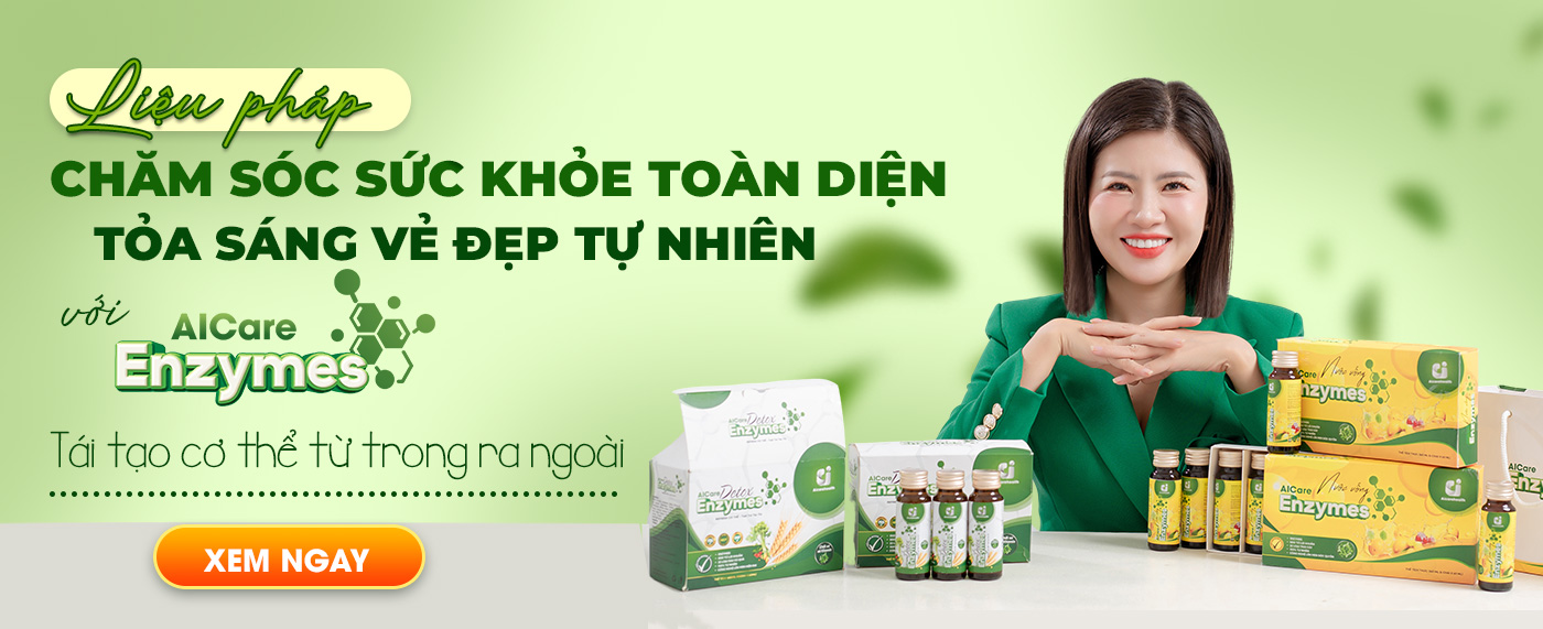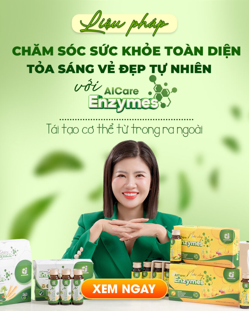 - AICare Enzymes: Sản phẩm hỗ trợ bổ sung enzyme từ thiên nhiên, kết hợp cùng các dưỡng chất có nguồn gốc thực vật, giúp bạn duy trì cảm giác dễ chịu sau mỗi bữa ăn và hỗ trợ chăm sóc cơ thể từ bên trong.